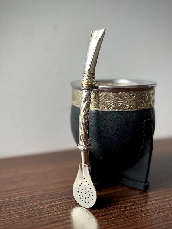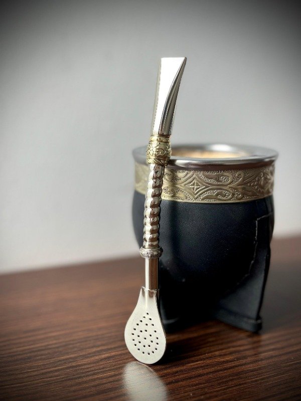 Presentamos nuestro bombillón de alpaca, una elección de calidad y practicidad. Su característica distintiva es su pico de bronce, que añade un toque especial a su diseño. Con un caño grueso de superficie labrada con piezas en bronce, se adapta perfectamente a cualquier tipo de yerba sin obstrucciones