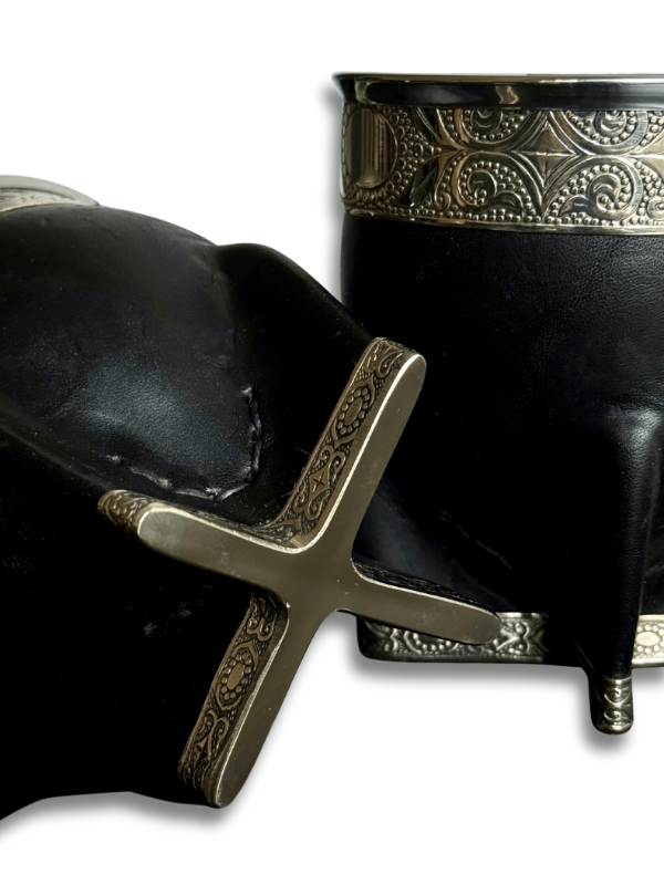 Te presentamos un mate tipo imperial que destaca por su diseño excepcional. Revestido en cuero vacuno y con cuatro patas reforzadas, ofrece durabilidad y autenticidad. En su interior, encontrarás calabaza brasileña seleccionada para una experiencia matera auténtica. Sin embargo, su característica distintiva son las patas reforzadas de alpaca cincelada, que añaden elegancia y resistencia a este mate único.